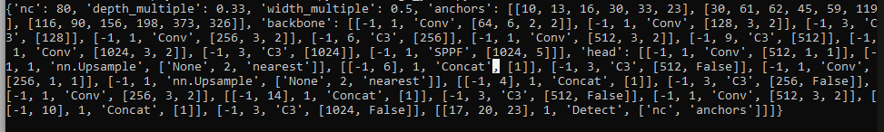 YOLO v5는 x(x-large), l(large), m(medium), s(small)의 4종류로 구성되는데 그중에서 우리는 s(small)을 사용하겠습니다. 그래서 우리는 yolov5s.yaml 파일의 내용도 변경해줘야 합니다. 위와 같은 방식으로 nc를 2로 변경해주면 됩니다.
